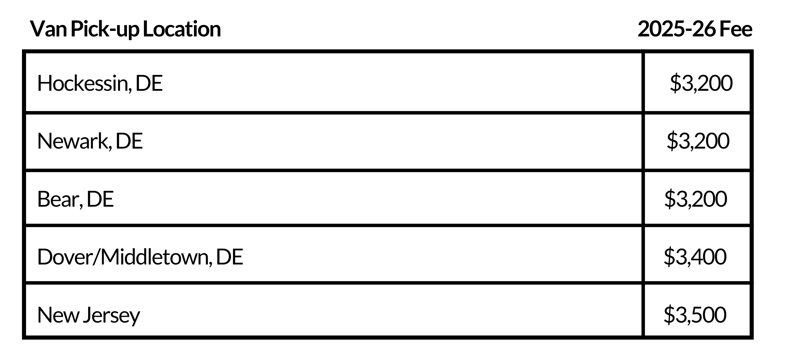 | Van Pick-up Location | Annual Transportation Fees 2025-26 |
