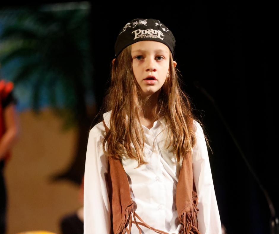 Our favorite pirates are back at work, seeking adventure and treasure on the high seas. A mighty storm rolls in and the pirates find themselves shipwrecked on a deserted island... or is it? Will the King of the High "C's" have a plan to save the day? Through the course of their musical adventures, the pirates discover that real treasure is something they have plenty of... friendship and family.
